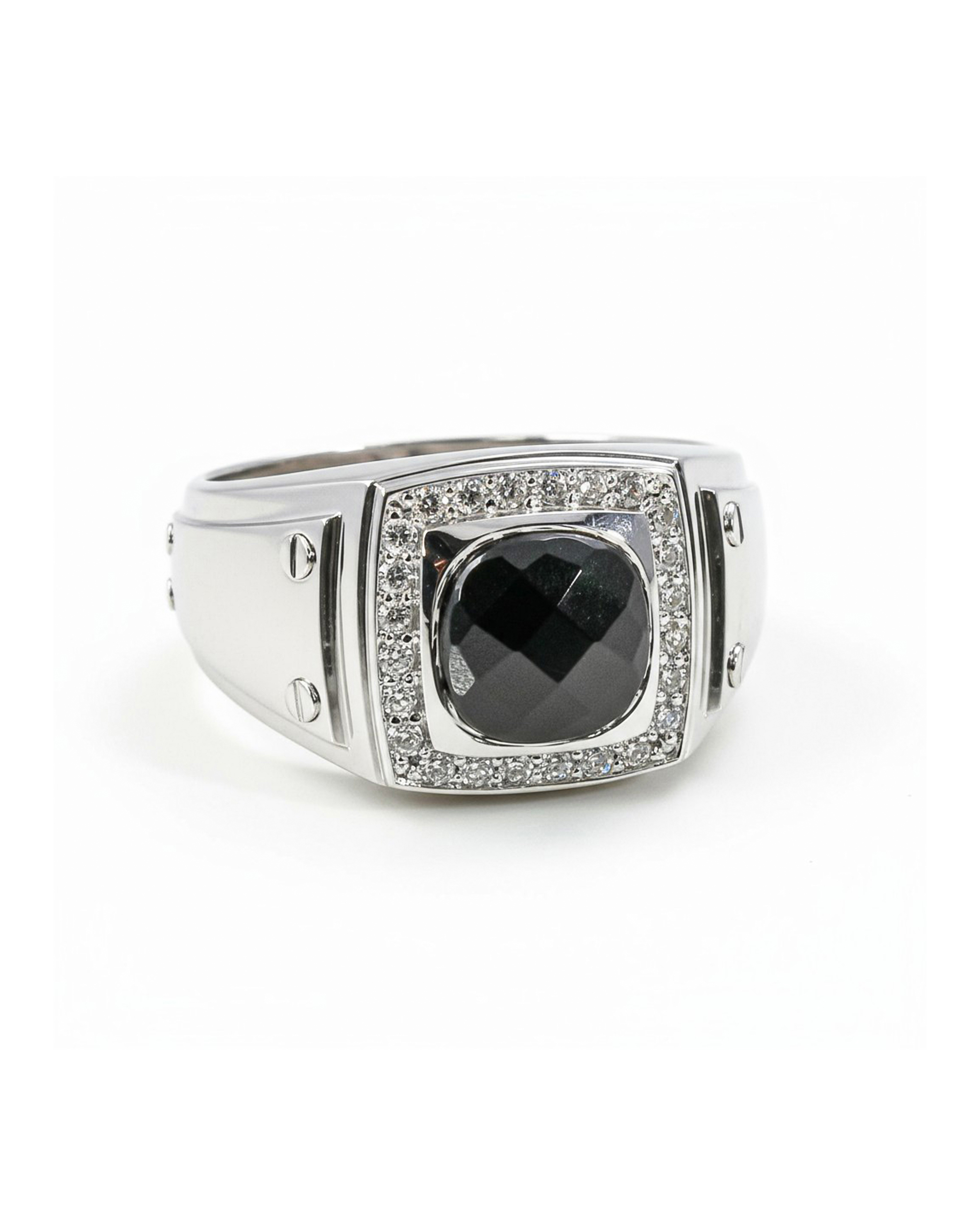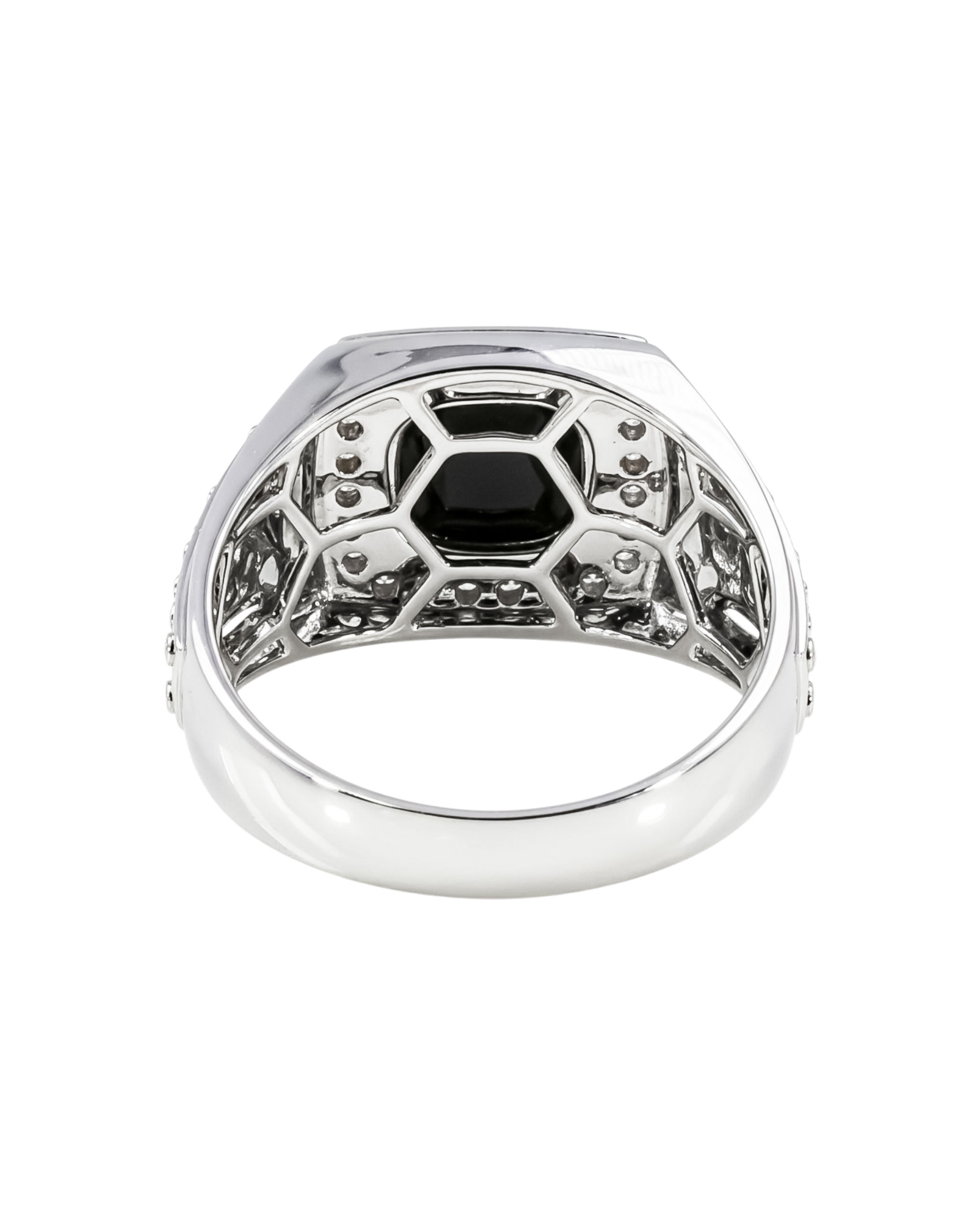 The ring is inspired by the image of a mysterious gem within a frame of power, combining both strength and sophistication. Crafted from 18K gold, its centerpiece is a mystical black sapphire, surrounded by sparkling diamonds that create a striking contrast. The design embodies power, confidence, and refined elegance, while celebrating the distinctive individuality of men.