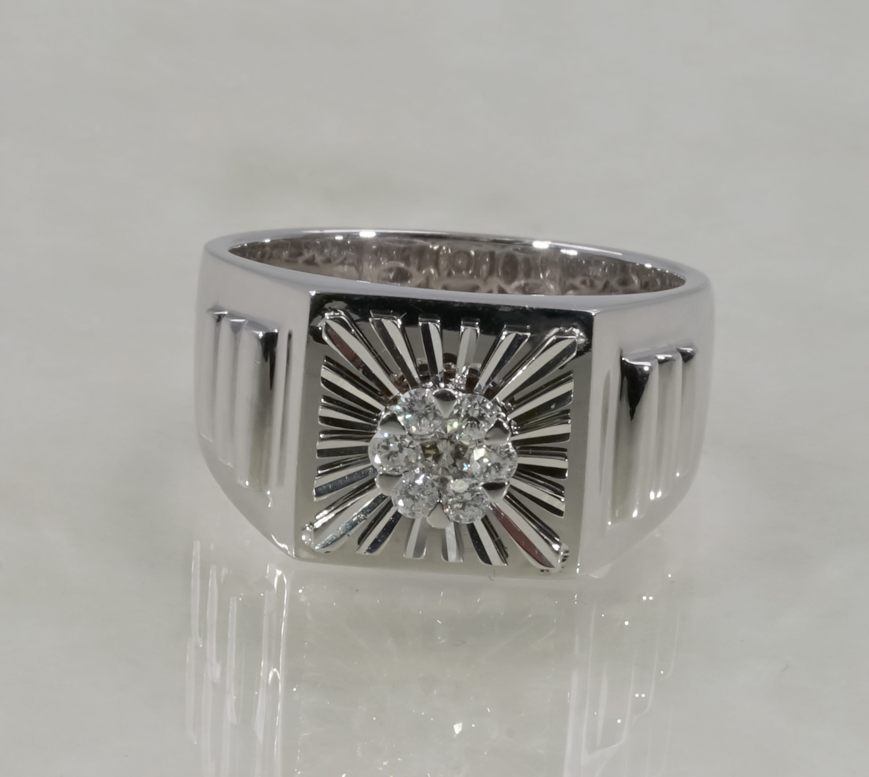The ring is inspired by the image of the radiant sun, symbolizing strength, power, and an eternal source of energy. Crafted from 18K gold and set with brilliant diamonds at the center, it creates a dazzling effect of sunlight spreading outward. This is the ideal design for men who want to assert confidence, charisma, and bold style.