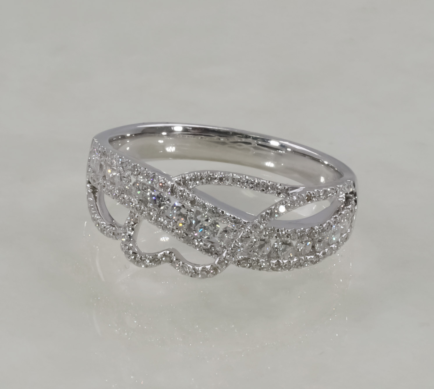 The ring is designed with inspiration from intertwined silk ribbons, symbolizing eternal connection and graceful beauty. Crafted from 18K gold and adorned with sparkling diamonds, its flowing lines embody both elegance and luxury. This is the perfect ring for those who cherish sophistication and the timeless beauty of everlasting bonds.