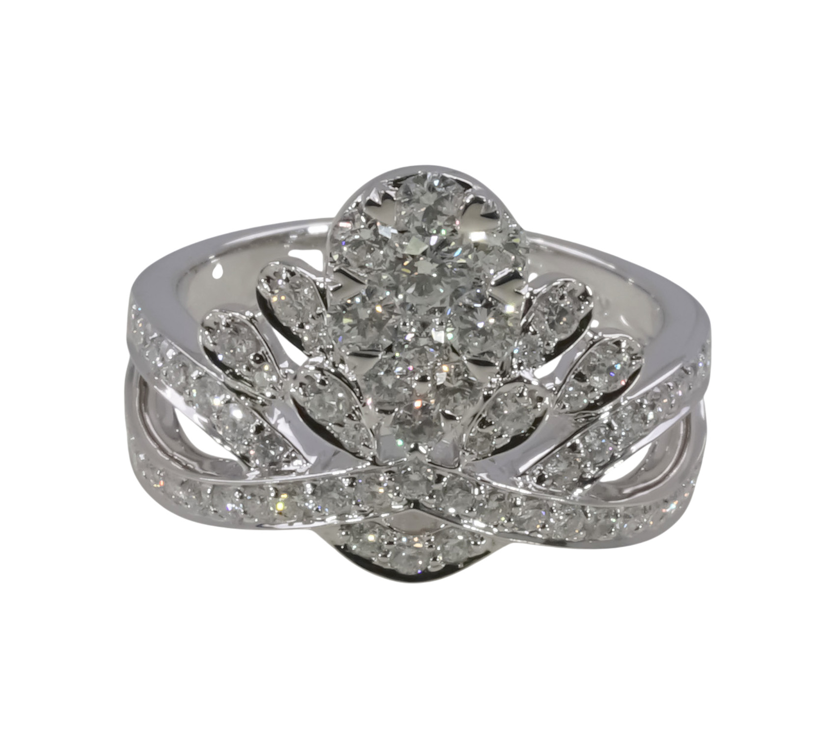 The ring is designed with inspiration from a radiant flower adorned with sparkling dewdrops, symbolizing freshness, purity, and feminine beauty. Crafted from 18K gold and encrusted with brilliant diamonds, it radiates dazzling light, celebrating grace and elegance. This exquisite piece is perfect for women who appreciate subtle charm with a touch of luxury.